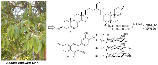 Keywords: Annona reticulata, Annonaceae, pimarane-type diterpene, flavonoid, cytotoxicity, SK-LU-1, SW626