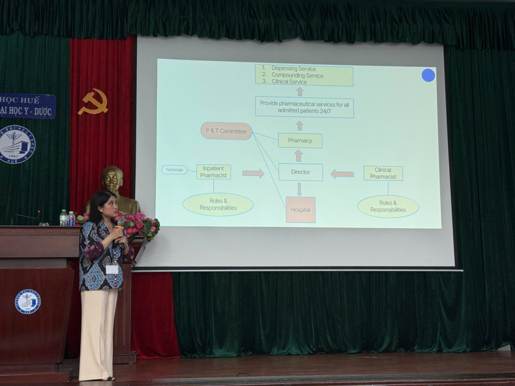 Chương trình bao gồm hai nội dung chính: “Hướng dẫn bào chế một số dạng thuốc tại nhà thuốc ở Mỹ” do Dược sĩ Tony Phan trình bày và “Giới thiệu hoạt động dược lâm sàng tại bệnh viện ở Mỹ” do Dược sĩ Thương Nguyễn trình bày.