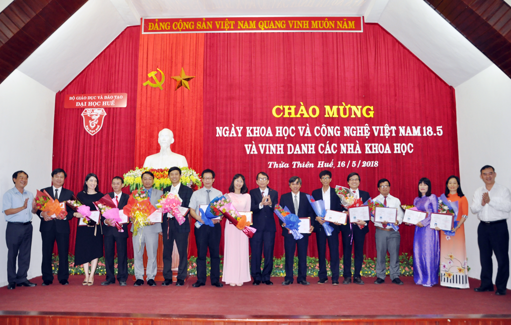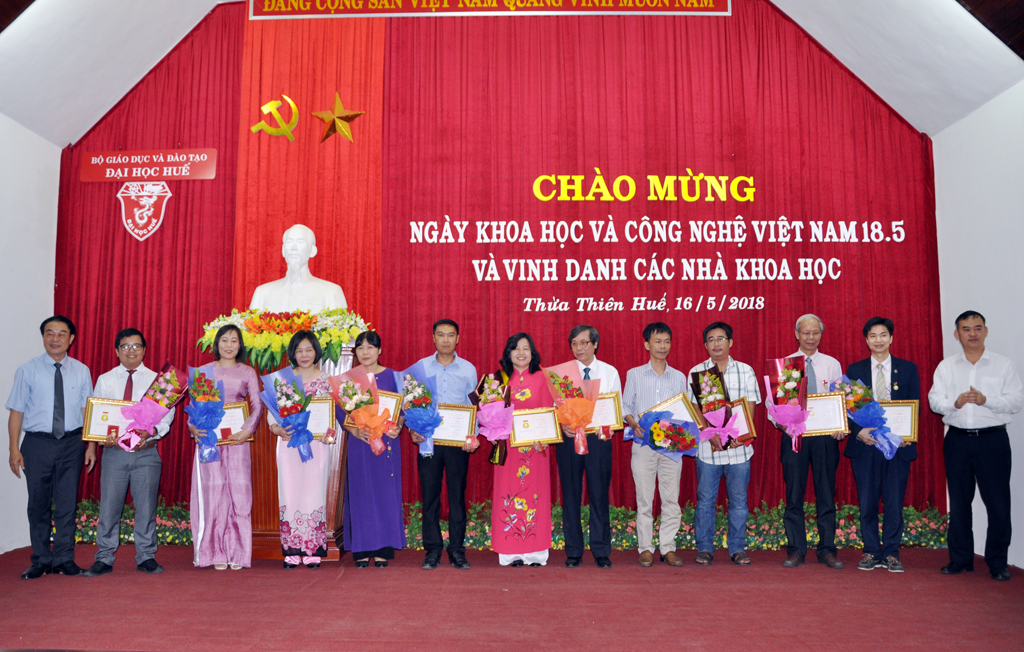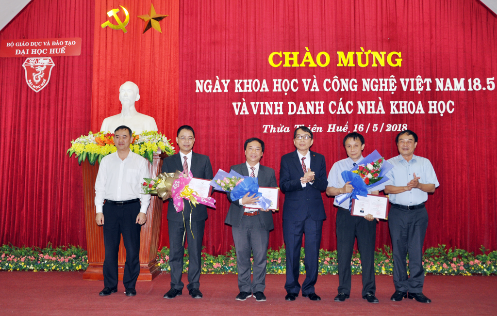 Sáng 16/5/2018, chào mừng ngày Khoa học và Công nghệ Việt Nam, Đại học Huế tổ chức vinh danh các nhà khoa học Đại học Huế đã có nhiều thành tích trong trong năm vừa qua. Ông Trần Nam Tú, Phó Vụ trưởng Vụ Khoa học và Công nghệ và Môi trường, Bộ GDĐT; PGS.TS. Trần Ngọc Nam, Giám đốc Sở Khoa học và Công nghệ tỉnh Thừa Thiên Huế; GS.TS. Phạm Như Hiệp, Giám đốc Bệnh viện Trung ương Huế; PGS.TS. Nguyễn Quang Linh, Giám đốc Đại học Huế đã tham dự.